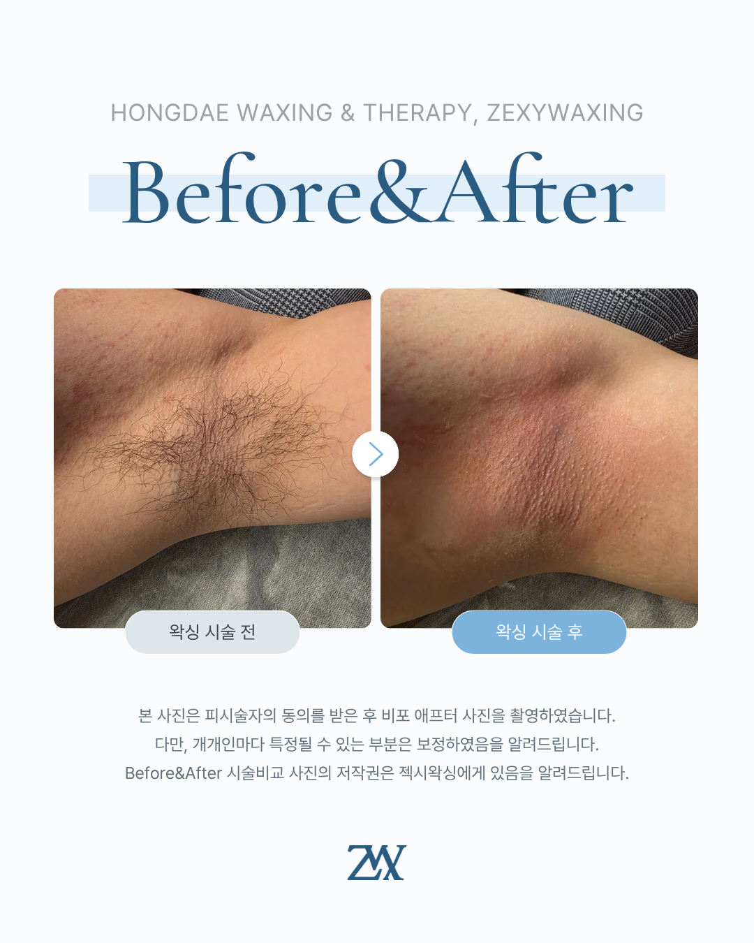 오늘은 젝시왁싱에서 실제로 진행된 겨드랑이 왁싱 비포앤애프터를 중심으로,